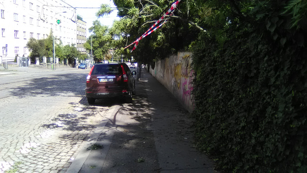 Dobrý den, děkujeme za Váš podnět. Přečnívající větev nad chodníkem jsme odstranili. Čistá Trojka