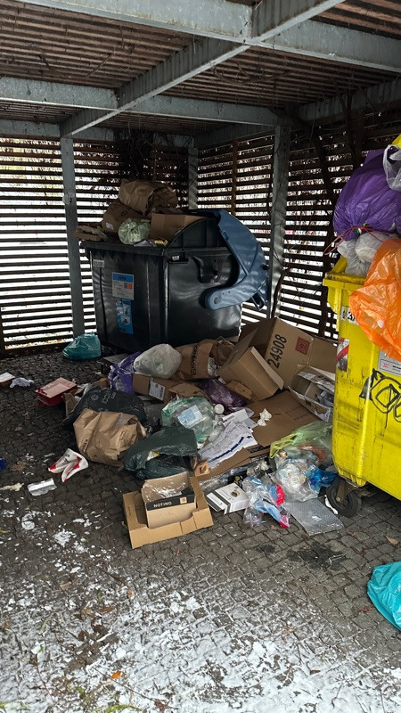 Dobrý den, děkujeme za Váš podnět. Tato plocha by měla být pravidelně uklízena pracovníky svozové služby. V rámci pravidelného úklidu by měli vše odstranit. Následně, hned jak to bude možné, provedeme kontrolu, zda se tak skutečně stalo a případně místo poklidíme. Krásný den Vaše Čistá Trojka