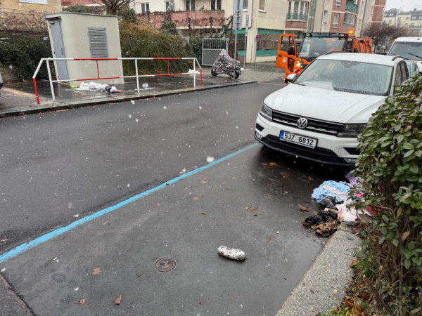 Dobrý den. V ulici Jeseniova, před domem číslo 1683/71 je na ulici na parkovacím místě vysypáno větší množství domovního odpadu. Nesjpíš jeden velký pytel. Část nepořádku je i na druhé straně ulice u vstupu do podzemního kolektoru.