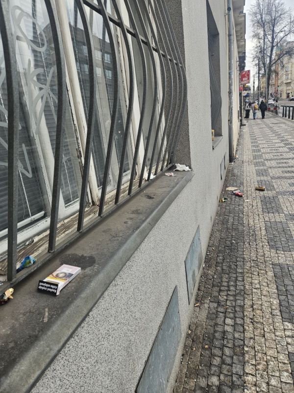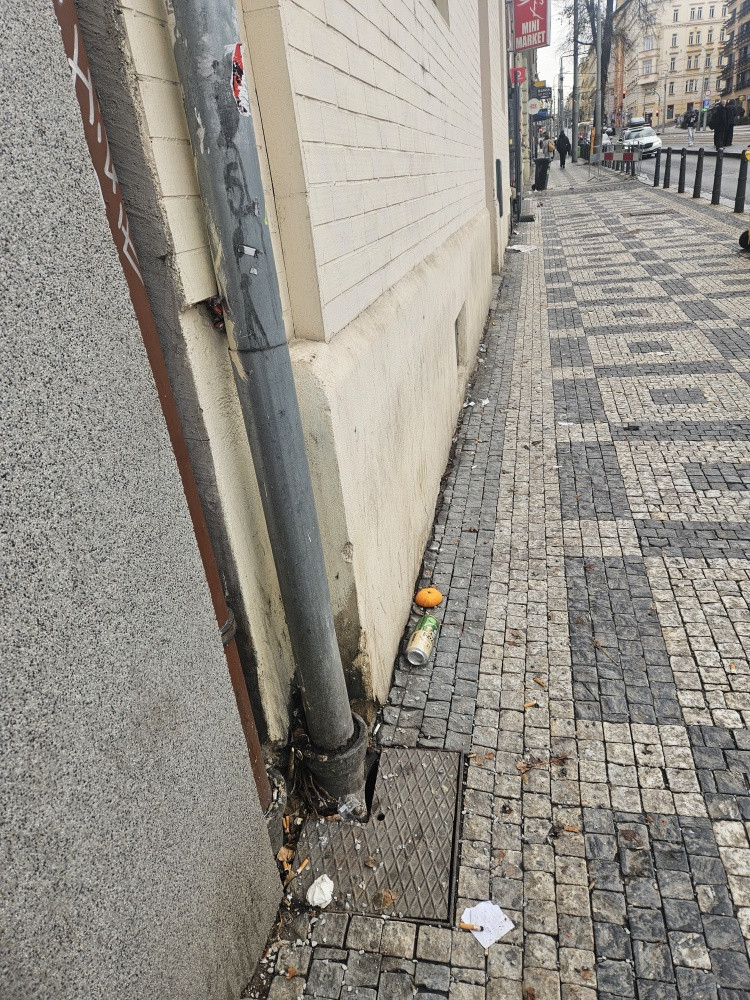 už od pondělí je nepořádek na chodníku mezi Tabákem a Fittopem.
