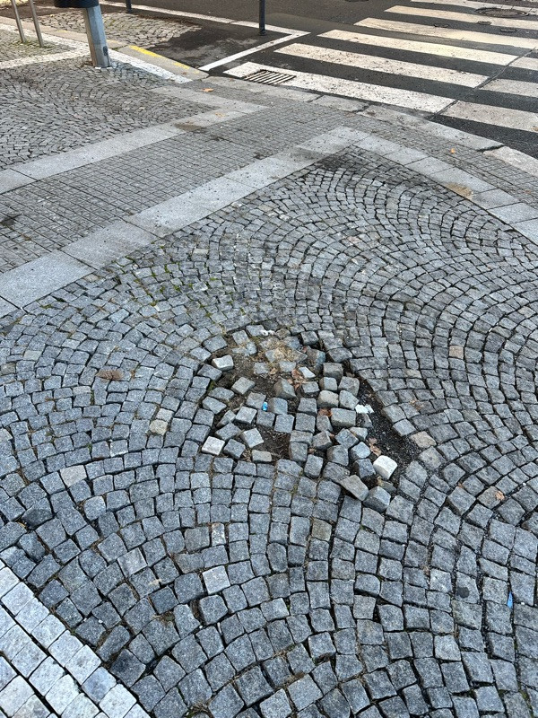 Rozbitá dlažba na chodníku