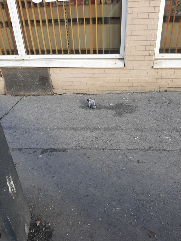 Prosím o odklízení mrtvého holuba na chodníku vedle domu Jana Želivského 1857/8, vedle večerky. Děkuji