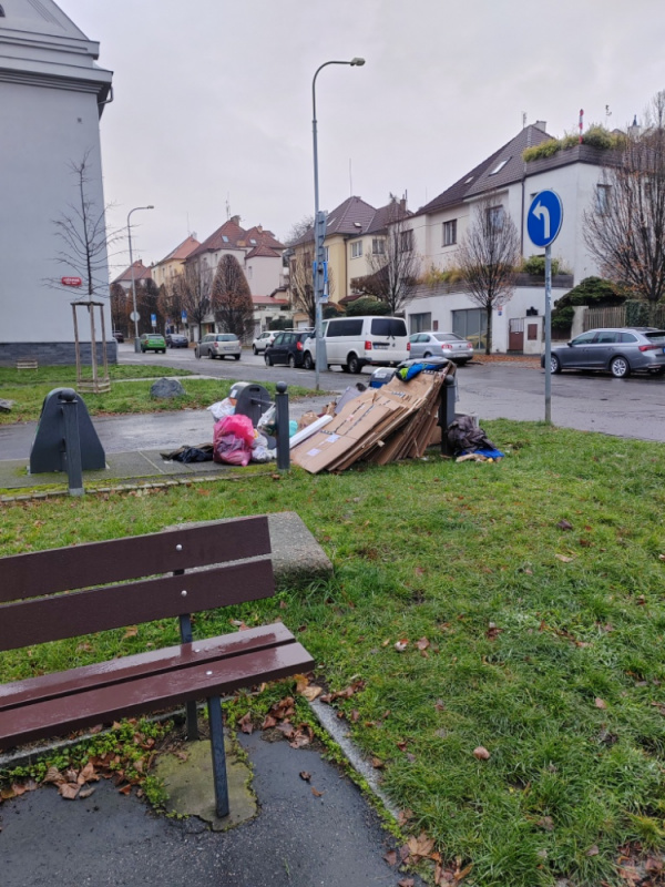 Dobrý den, děkujeme za Váš podnět. Tato plocha by měla být pravidelně uklízena pracovníky svozové služby. V rámci pravidelného úklidu by měli vše odstranit. Následně, hned jak to bude možné, provedeme kontrolu, zda se tak skutečně stalo a případně místo poklidíme. Krásný den Vaše Čistá Trojka