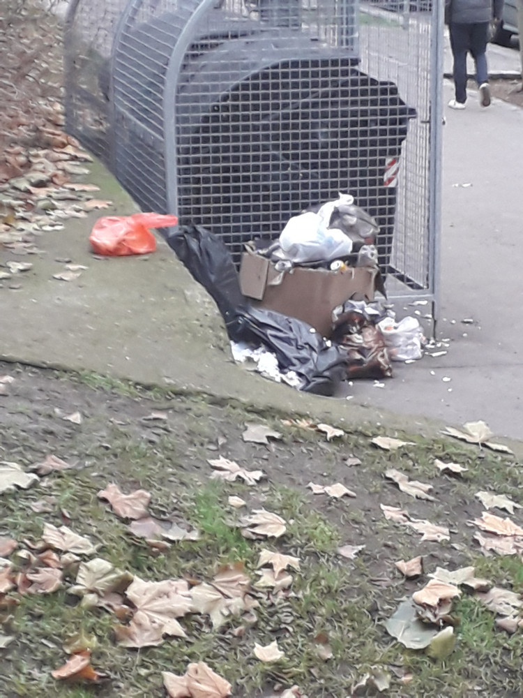 nepořádek vedle klecí na kontejnery,odložení pytlů s odpadky,krabice