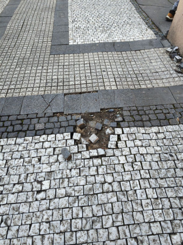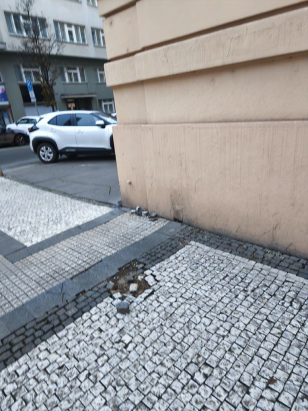 Dobrý den, chtěla bych nahlásit díru v chodníku na Vinohradské ul., dům Sudoměřská 2. Jde o vybrané dlažební kostky.
