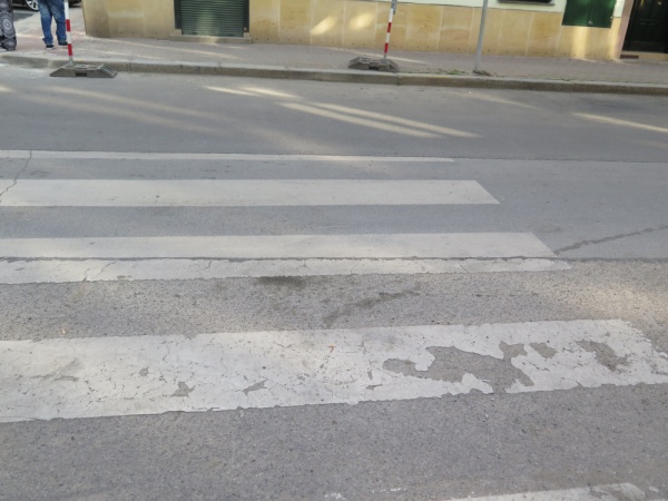 Patrně po opravě kanalizace v ulici nebyl stále ještě obnoven přechod.
