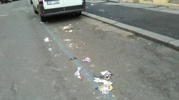 Na ulici Řehořova 28, Praha 3 vandal rozsypal popelnici po ulici (zejména v místě parkovacích stání - modré zóny). Prosím o zajištění úklidu. Děkuji s pozdravem Kolda