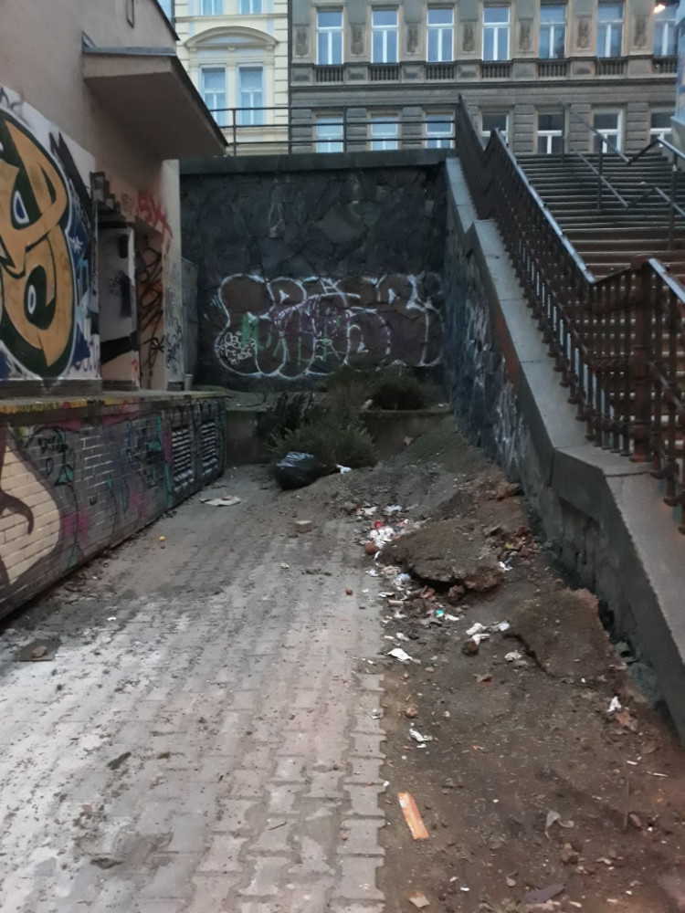 uvedené místo na Kostnickém náměstí mezi rozvodnou a schody je sběrným místem