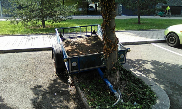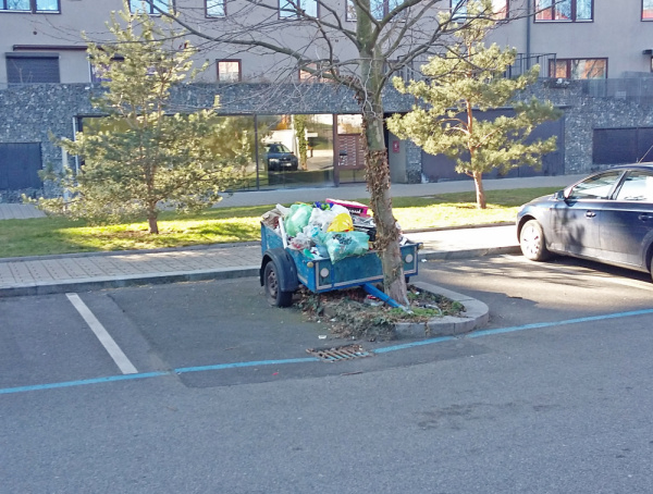 Přívěs plný odpadků. Možná to patří spíš do sekce černé skládky, ale to je asi jedno - každopádně to hezky nevypadá a divím se, že obyvatelé toho drahého komplexu si to nevyřeší.