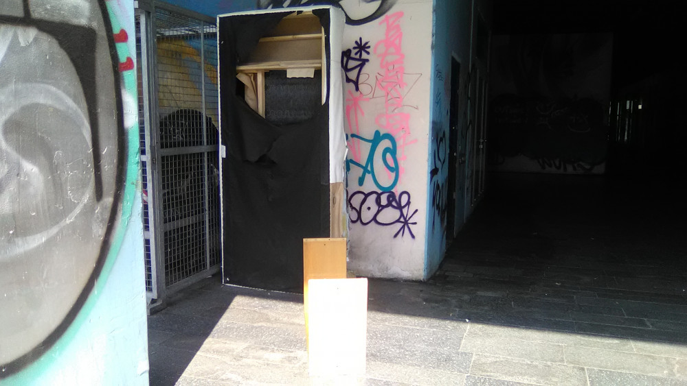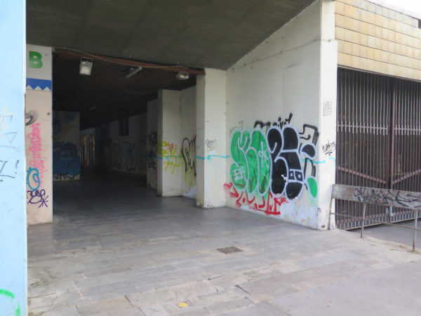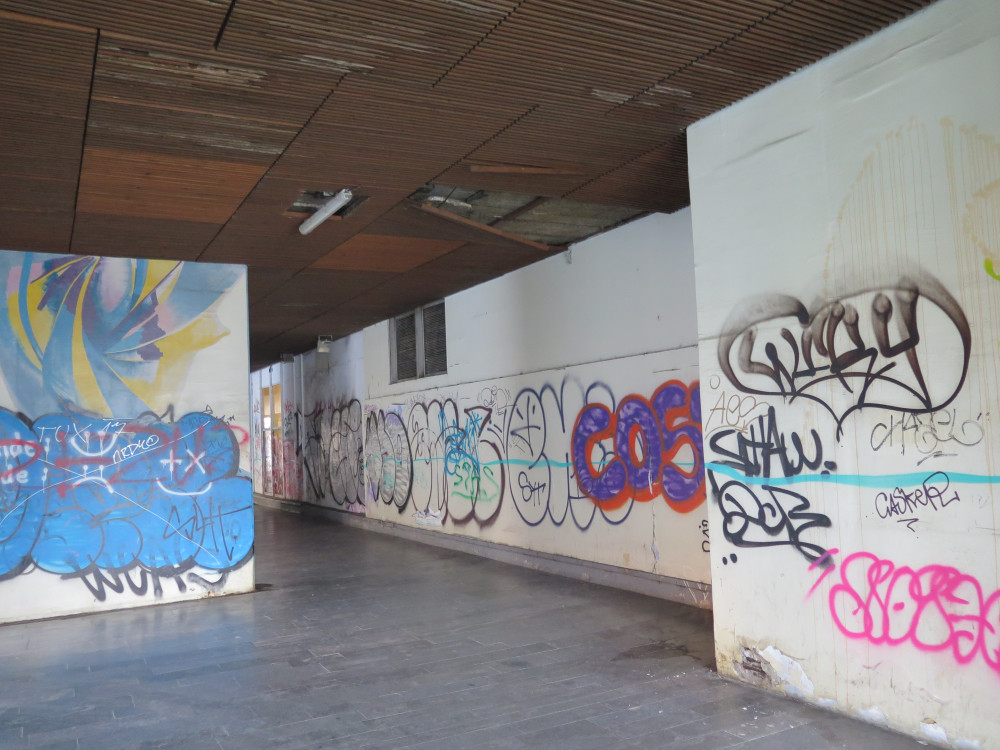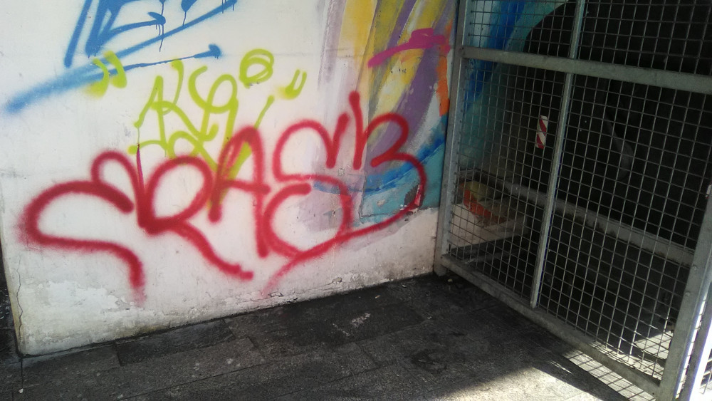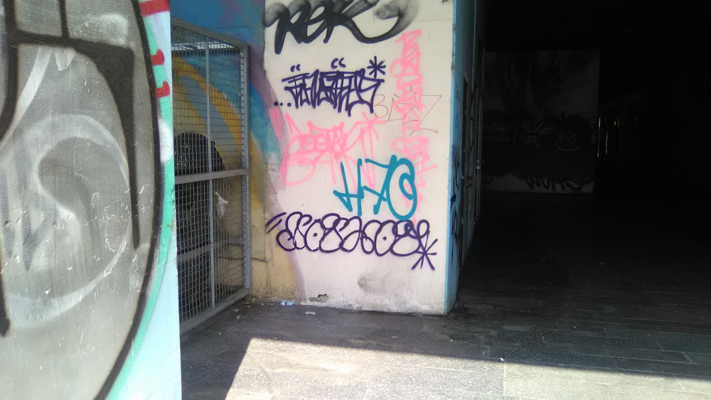 Okolí prodejny potravin známé pod místním názvem Bezovka na pražském Žižkově je již dlouho v neutěšeném stavu. Grafity, bezdomovci, odpadky, exkrementy a to nejen psí. Tímto podchodem pod panelovým domem prochází denně mnoho lidí. Dřevěné obložení stropu hrozí zřícením. Jen doufám, že až to spadne, tak tam zrovna nikdo nebude.