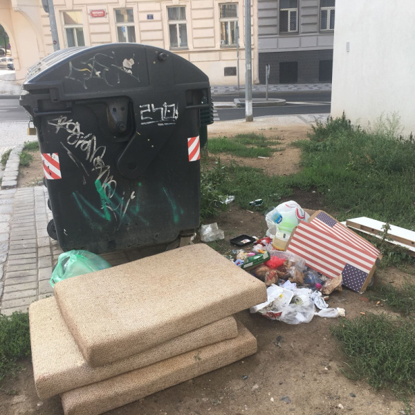 Roh ulic Rokycanova a Jeseniova. MČ sice kontejnery opatrila zamky, ale to problem neresi. Kolem kontejneru je stale neporadek. Je nutno kontejnery uzamknout do koji, tak jak tj.napr. v ul.Lupacova. Domy jsou sice zevne zrekonstruovane, ale nepochopitelne nebyl do rekonstrukce zahrnut tento prostor, ac u ostatnich domu kontejnery zajisteny jsou. Je to ostuda. Kazdy den chodit kolem tohoto prostoru u domu s byty 1. kategorie. Stav, ktery zde uvadim je jeste ten lepsi. Prostor obvykle vypada o moc hure.