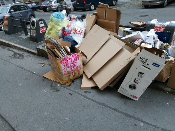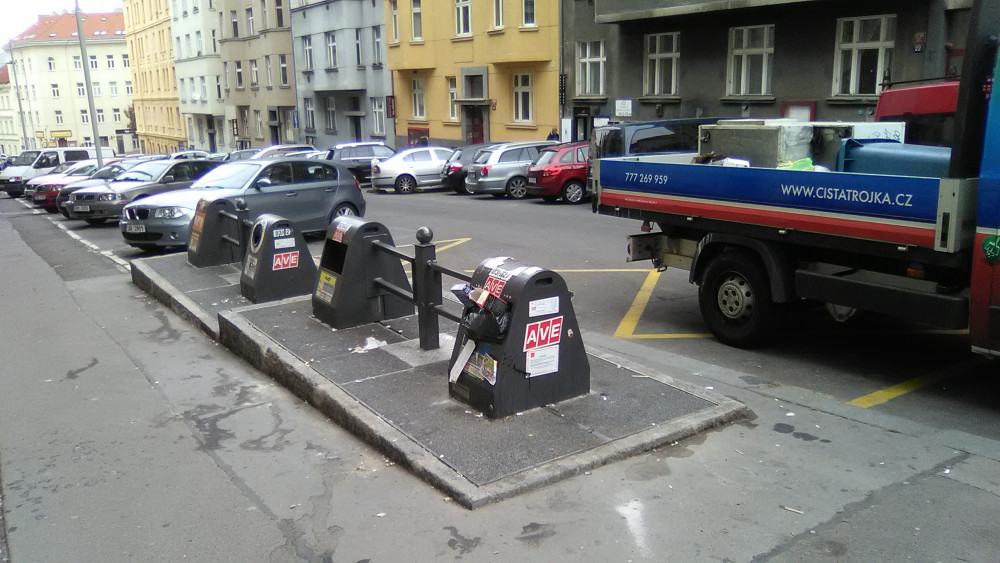 Nepořádek u podzemních kontejnerů na rohu Čajkovského x Kubelíkova. Opakujte se často. Kapacita kontejnerů nestačí. Vyvážejte prosím častěji.