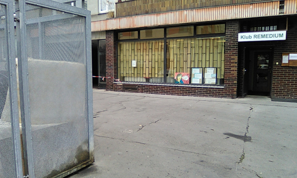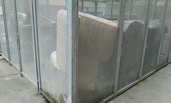 dnes 25. 11. 2018 je sedací souprava umístěna mimo klec s kontejnery před prádelnou společně se stolkem.