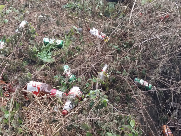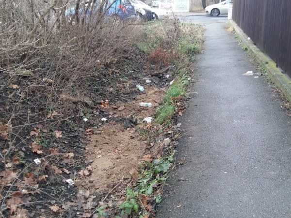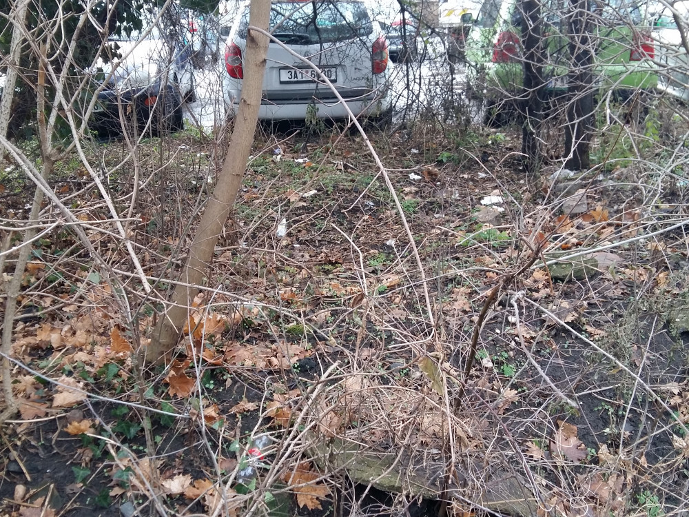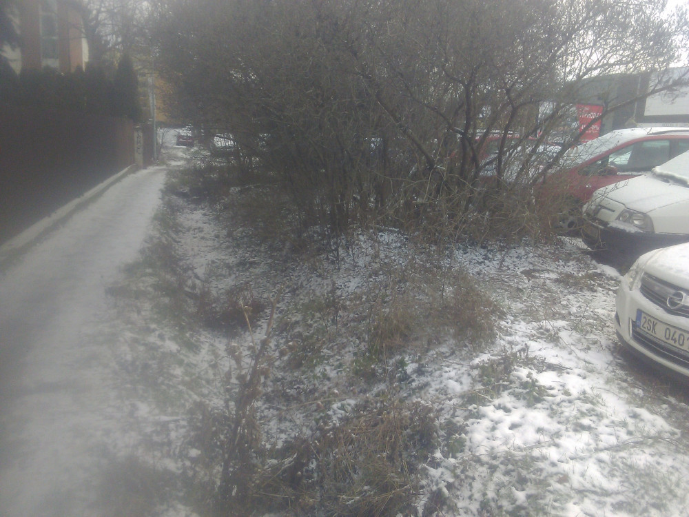 Neporadek a skladka v okoli chodniku v ulici Malesicka za parkovistem oproti Penny Marketu.