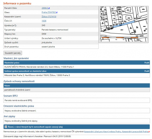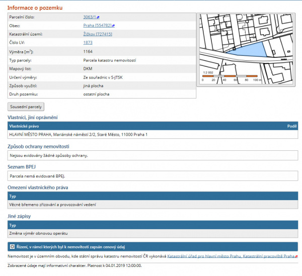 Nepořádek se nachází na parcelních číslech 3063/1 a 2896/2 dle výpisu z KN je vlastníkem Hlavní Město Praha a pro parcelu 2896/2 je MČ Praha 3 svěřena správa nemovitosti. V příloze příkládám příslušné výpisy KN.