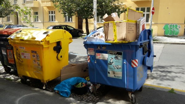 děkujeme za Váš podnět. Kontrolu tohoto místa jsme naplánovali na pondělí 4.7. Firma AVE toto kontejnerové stání vyváží dvakrát denně i v sobotu a neděli. Tedy by to mělo být v pondělí v pořádku. Nebude-li tomu tak rádi jako vždy uklidíme:-)