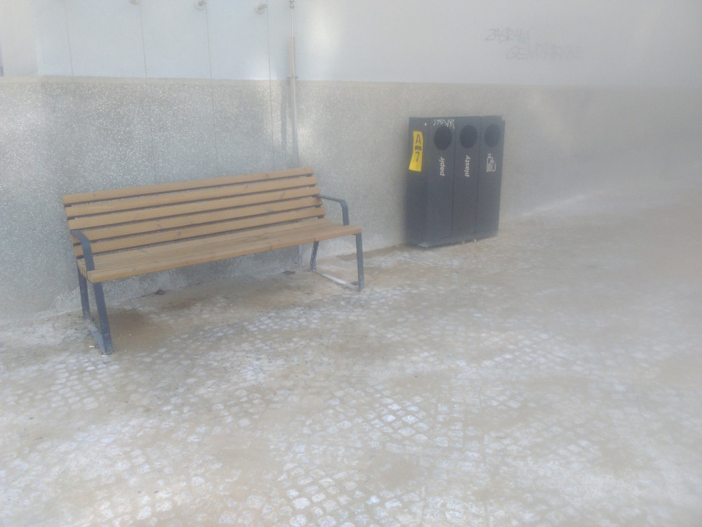 nepořádek na ulici, pravděpodobně po bezdomovcích