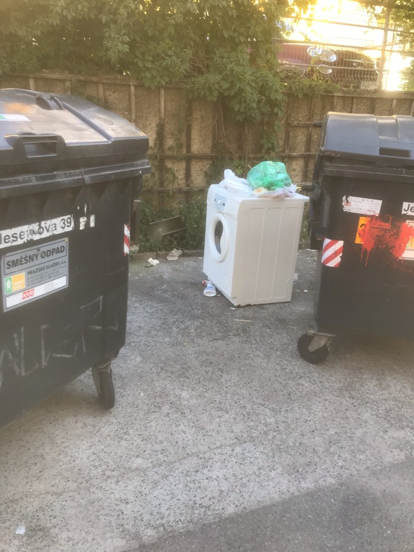 Dobrý den, děkujeme za Váš podnět. Pračku a nepořádek kolem jsme poklidili. Čista trojka