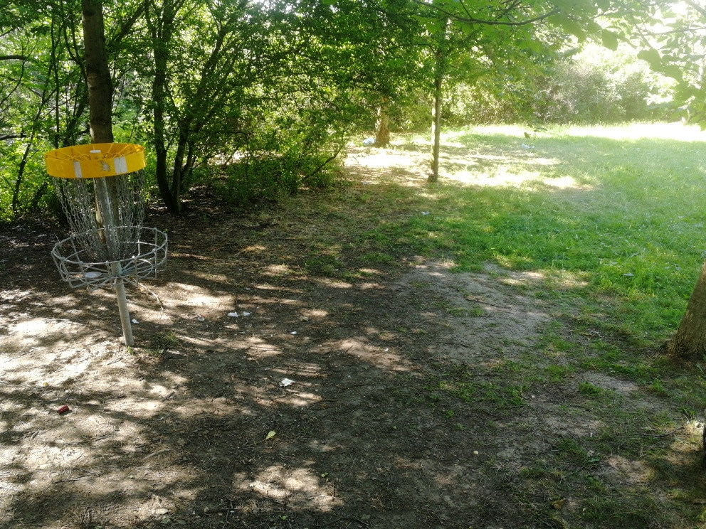 Drobny neporadek u Disc golfu. Par petek, rozbite sklo, nejaky ten pakl. Ocividnr pozustatek "vecirku"