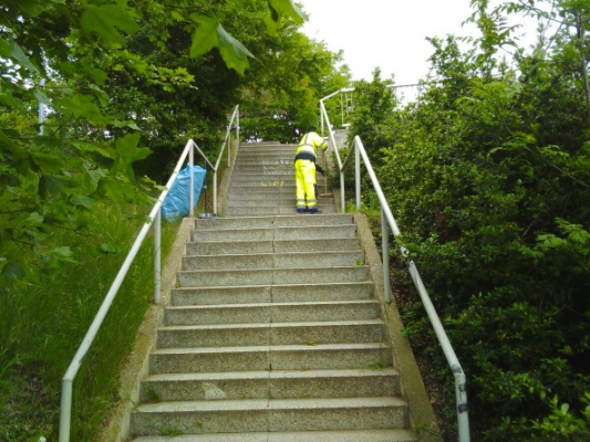Občas se stává, že se obvyklá denní dávka vašich oznámení stihne vyřešit rychleji. Třeba včera jsme měli „jen“ osm hlášení a krátce po obědě jsme s nimi byli hotovi. To se pak vracíme na místa, která známe z předchozích dní a kde se nachází opravdu rozsáhlejší nepořádek. Takže včera odpoledne jsme čistili schody k nadzemnímu přechodu u křižovatky Ohrada a jejich přilehlé okolí. V rezervě máme i další místa, kam se chceme ještě vrátit.